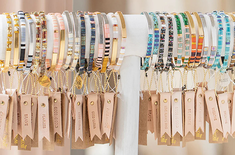 Share good intentions with our lovely Japanese glass Miyuki bracelets. Pearlescent beads all strung with empowering messages.